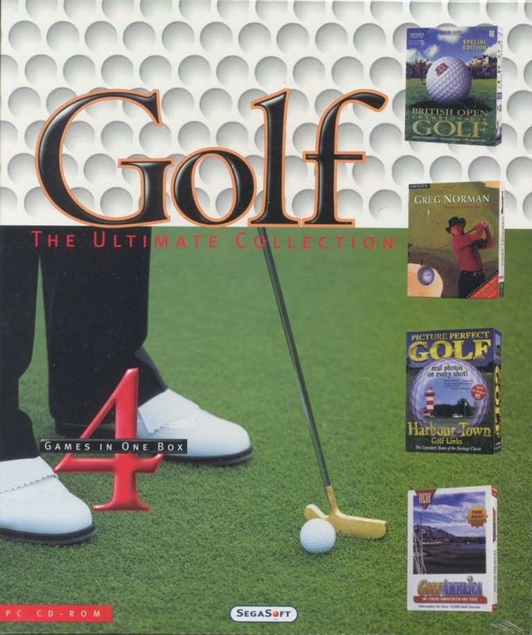 A 1997 Windows compilation from SegaSoft, featuring three golf games (British Open, Greg Norman, Picture Perfect) and GolfAmerica guide.