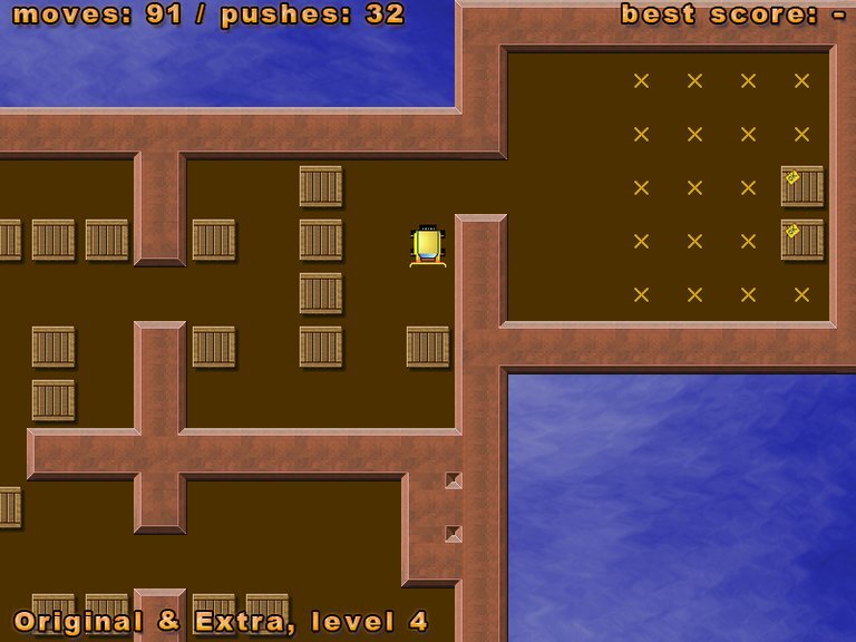 Push boxes to target locations in this free, portable Sokoban puzzle game featuring animated movements and undo support.