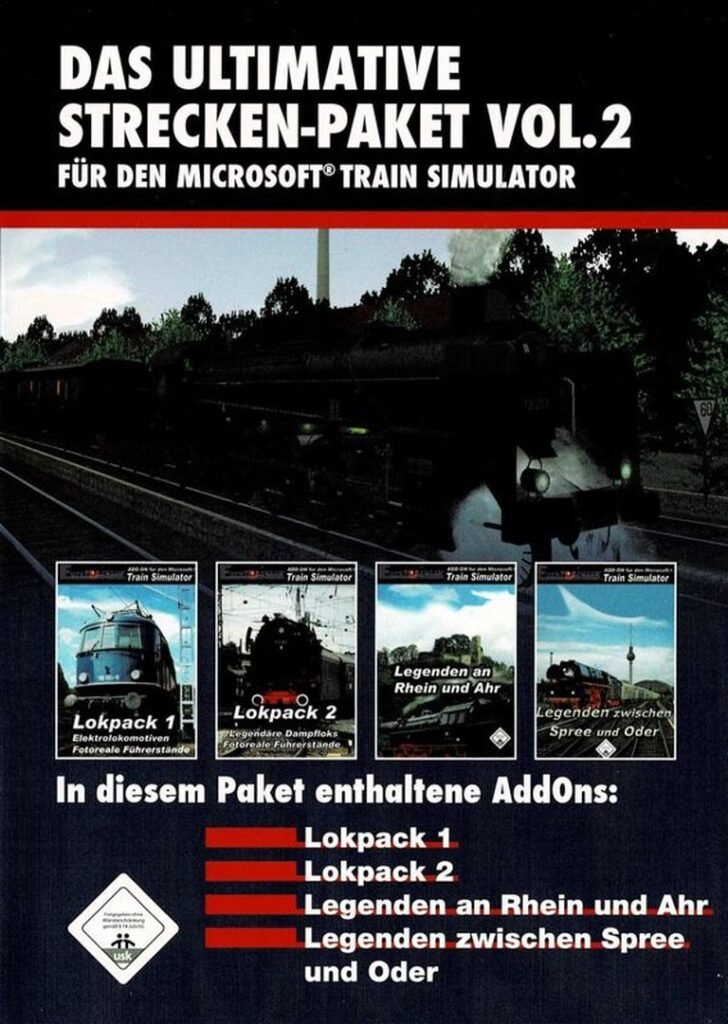 A 2007 add-on pack for Microsoft Train Simulator with two German routes and over 50 locomotives for immersive train simulation.