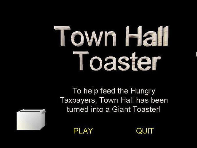 Turn a Town Hall into a giant toaster in this whimsical freeware game, launching toast onto rotating plates to earn points and save the hungry citizens!