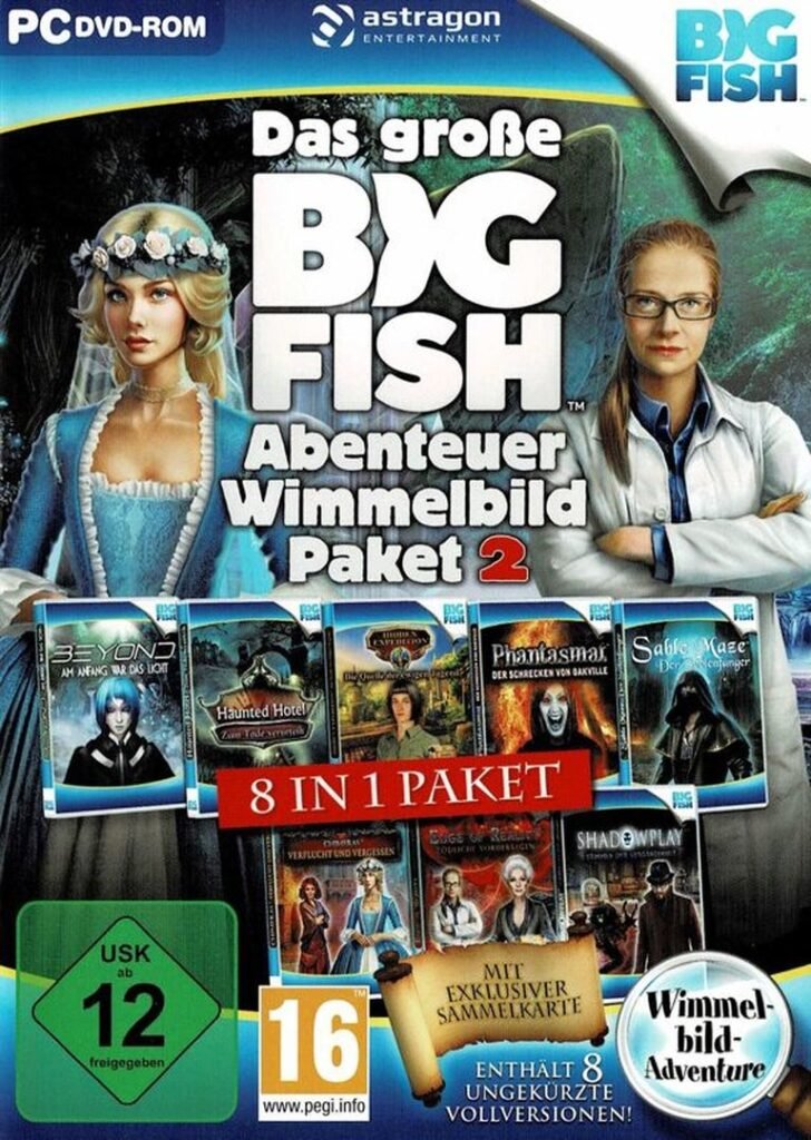 Discover eight Big Fish hidden object adventures in Das große Big Fish Abenteuer Wimmelbild-Paket 2, from cursed swamps to haunted hotels and lethal predictions.