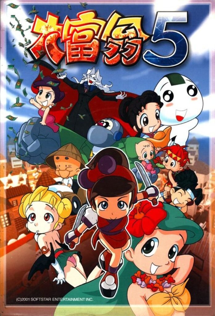 Da Fuweng 5 is a real-time Monopoly-like game with online multiplayer, offering strategic board gameplay and comedic anime-style visuals in the Richman series.