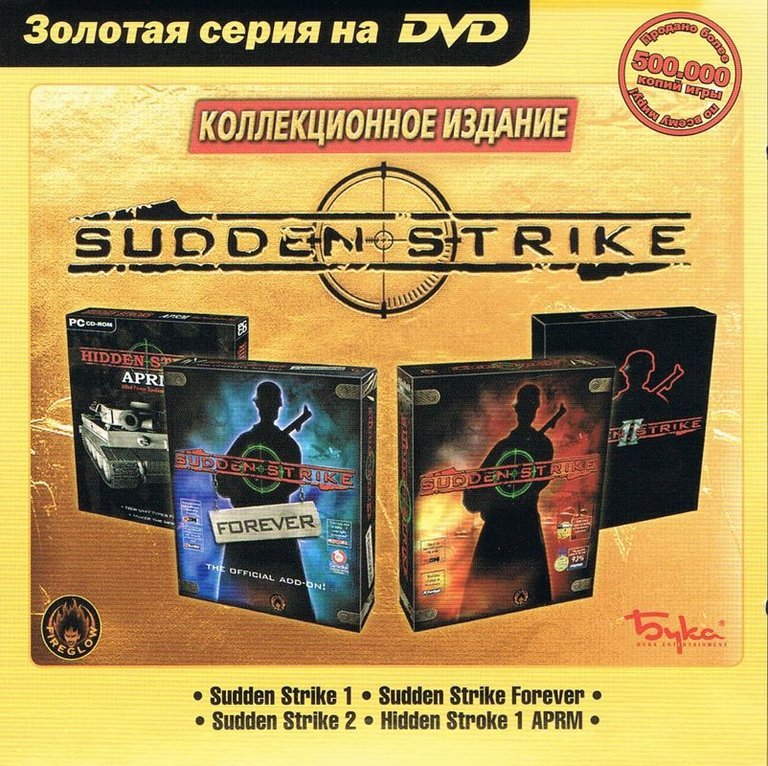 A WWII real-time tactics compilation containing Sudden Strike, Sudden Strike: Forever, Sudden Strike II, and Hidden Stroke: APRM, focusing on strategic combat without resource management.
