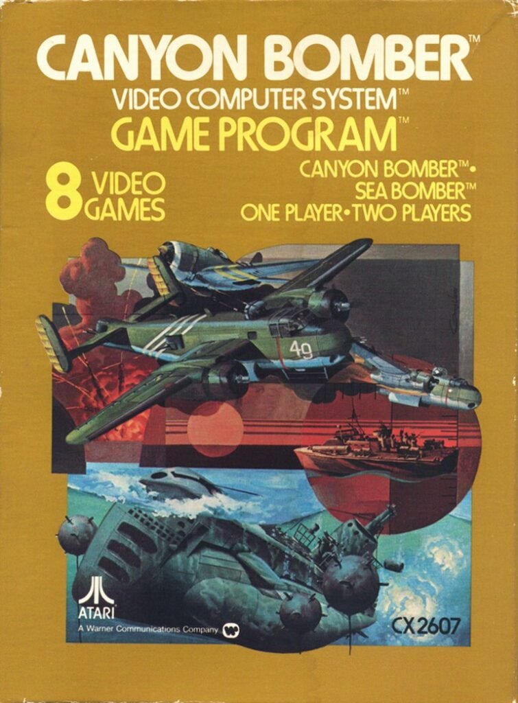 Arcade action game challenging players to bomb canyon block formations and naval targets using precise timing and minimal controls, featuring two distinct demolition-focused modes.