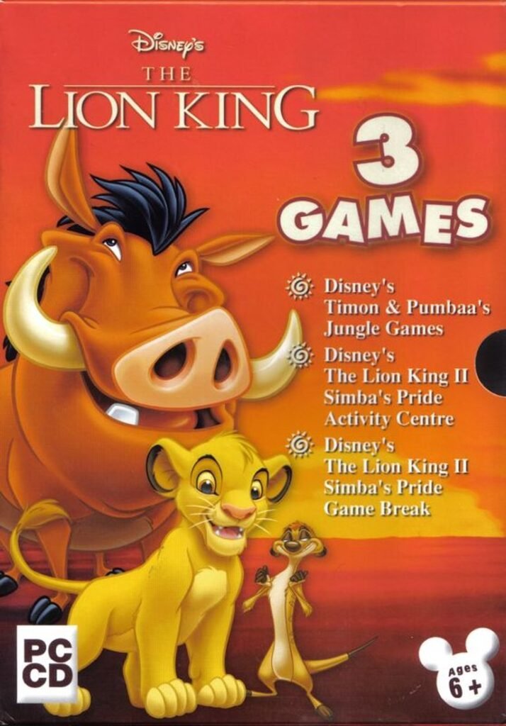 A 2002 Windows compilation featuring three Lion King-themed games: Timon & Pumbaa’s mini-games, Simba’s Pride activities, and a side-scrolling adventure.