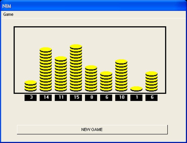 Nim is a strategy game where players remove discs from piles, avoiding the last disc to win. Customize the game and get hints in this Windows implementation.