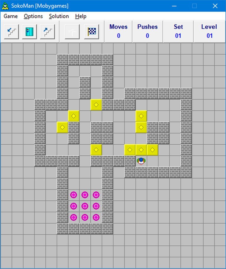 Sokoman is a top-down puzzle game where players push boxes to designated spots in a warehouse. It features multiple levels and advanced options in the registered version.