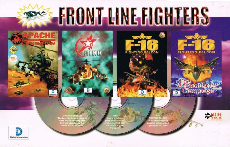 A 1998 compilation bundling three enhanced flight sims—Apache, Hind, and F-16 Fighting Falcon—with updated graphics and missions.