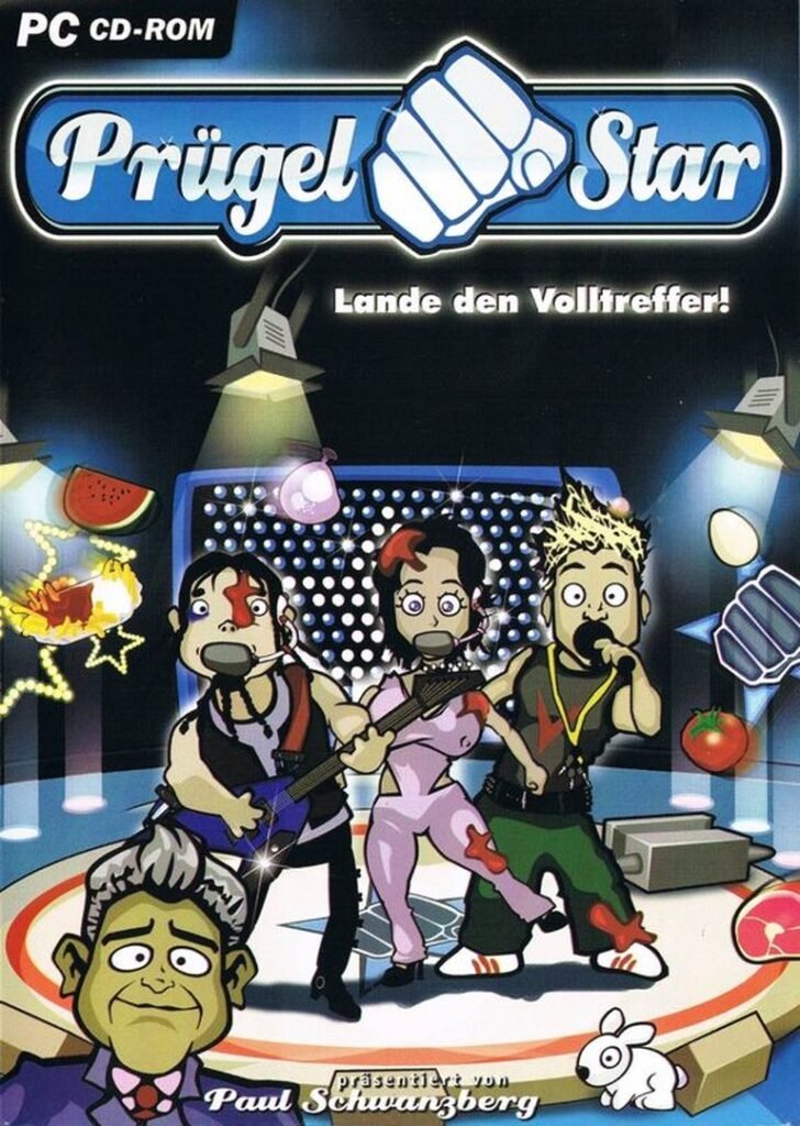 In Prügel Star: Lande den Volltreffer!, unleash chaos on a casting show stage by hurling absurd items like toilets and rotten food at contestants. This 2003 arcade shooter challenges players to master 30 levels of projectile-throwing mayhem.