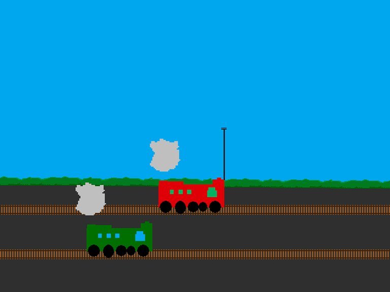 A 2D train simulation game where players control trains in a side-scrolling environment.