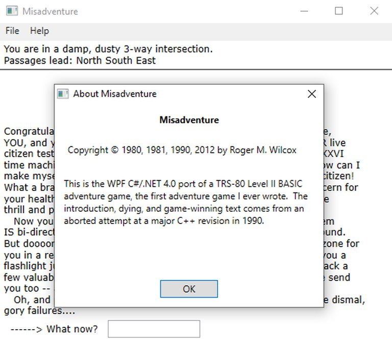 A humorous text-based adventure where you test a faulty time machine and explore a medieval dungeon in search of treasures.